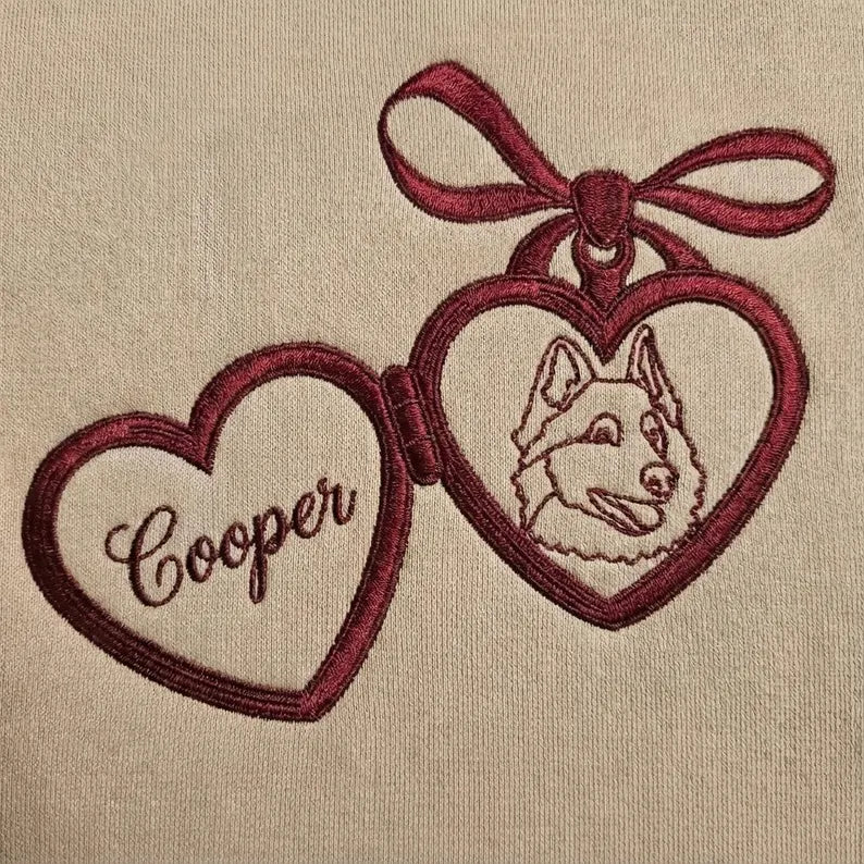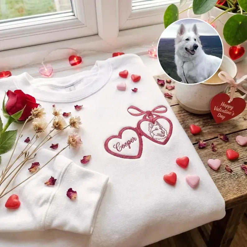 This personalized embroidered Valentine sweatshirt is a thoughtful consideration for anyone who adores their furry companion. Featuring a delicate heart ornament design with custom pet embroidery, it’s a meaningful way to celebrate love — not just romantic love, but the unconditional love we share with our pets.
